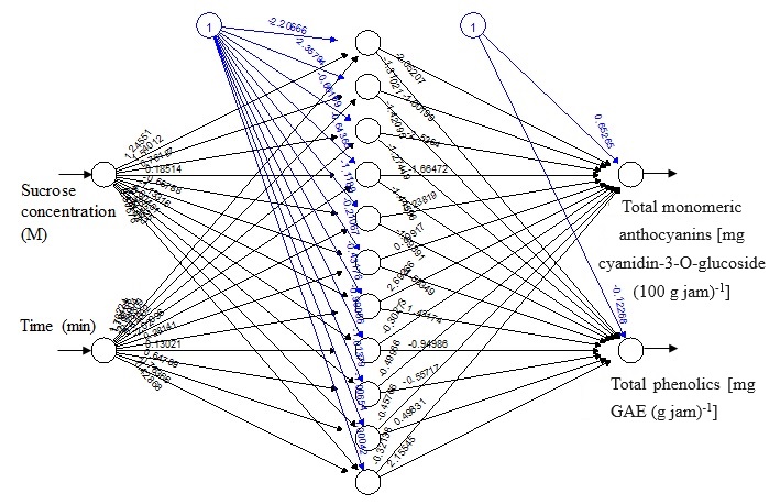 Artificial neural networks in the retention of anthocyanins and total phenolics in the osmotic pre-treatment of Biloxi variety blueberry (Vaccinium corymbosum L.) jam
